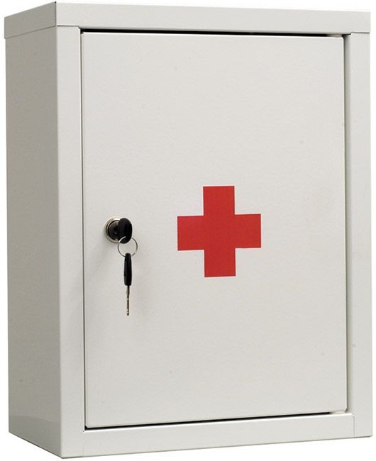 - Небольшой вес изделия достигается за счёт использования тонколистного металла в качестве основного материала. Благодаря этому аптечку можно разместить на полке шкафа или прикрепить к стене, используя имеющиеся в корпусе отверстия.